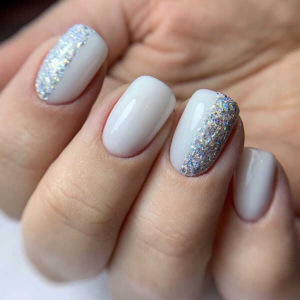 La base Ultra Strong Shine Snow è una base con flessibilità media di tonalità lattiginosa con un leggero shimmer, è coprente, ideale per semipermanente classico o rinforzato e allungamenti fino 0,5 mm.